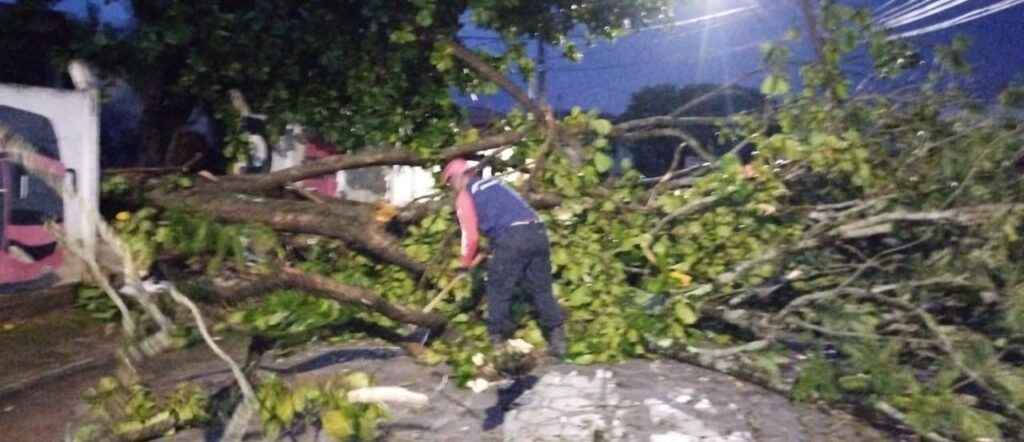 “ATENÇÃO, ALERTA À POPULAÇÃO. A forte chuva registrada no início da noite em Barroso causou queda de árvores e galhos, pontos de alagamento, enchentes e destelhamento de residências em alguns bairros da cidade. A Prefeitura de Barroso está em alerta e mobilizada para atender as ocorrências. Em situações de emergência, a população deve entrar em contato com a Defesa Civil: (32) 9 9801-1316. Evite áreas alagadas, não se aproxime de árvores ou estruturas comprometidas e redobre os cuidados. A Prefeitura segue acompanhando a situação e reforça o compromisso com a segurança da população”.