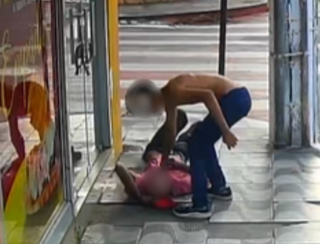 Imagens de câmeras de segurança instaladas nas proximidades registraram o momento das agressões, por volta das 5h54. As gravações mostram a vítima sendo atacada pelo autor, enquanto populares que presenciaram a cena intervieram, abordando e advertindo o agressor.